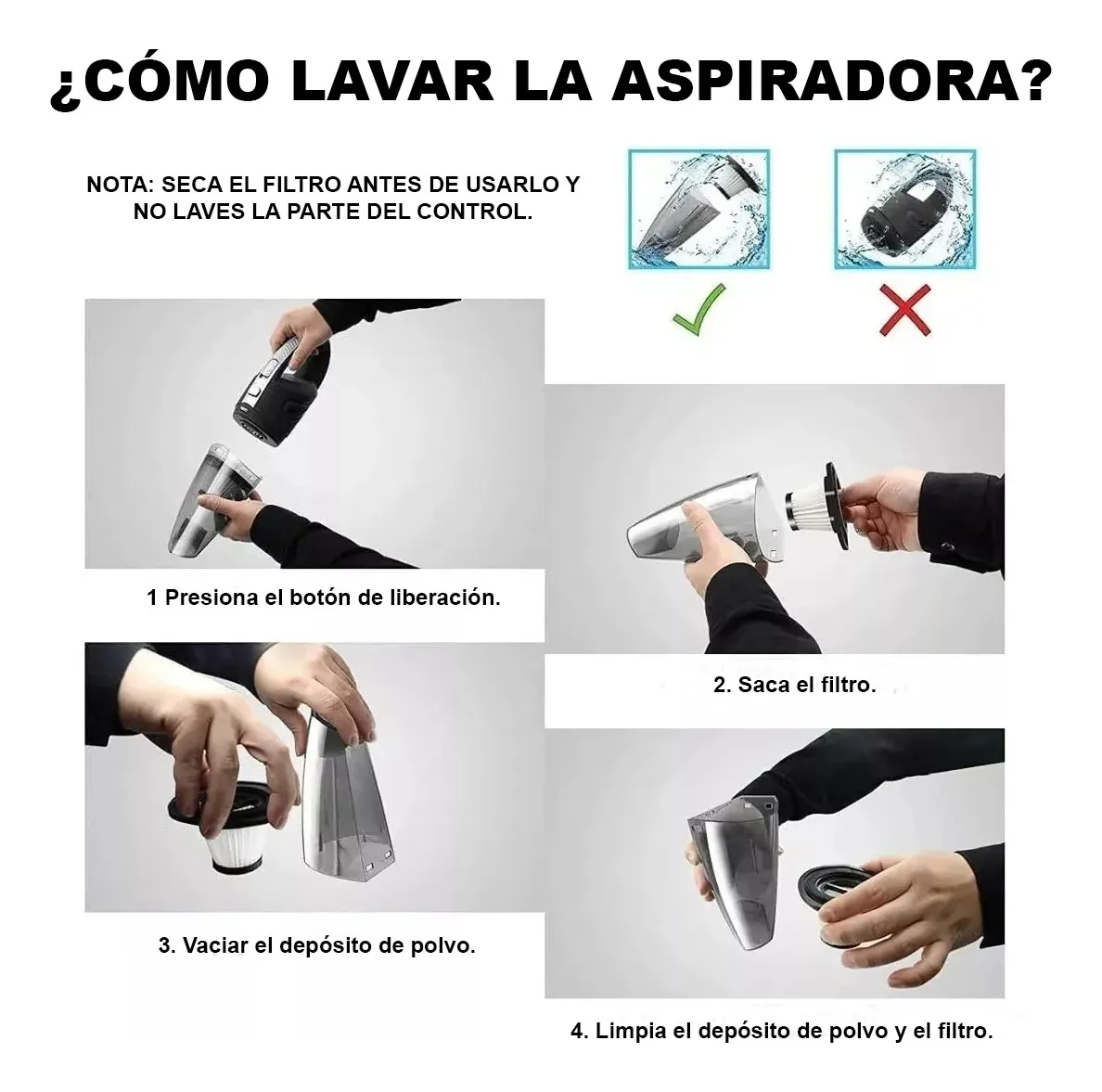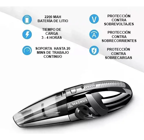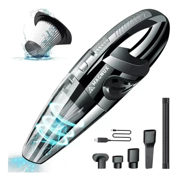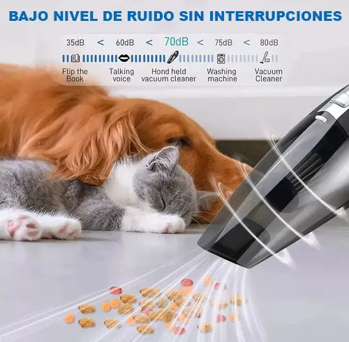 Aspiradora inalámbrica para el hogar y el coche con diseño portátil y sin cables, permite limpiar con facilidad y sin restricciones. Funciona con un nivel de ruido inferior a 70 dB, asegurando una limpieza silenciosa.