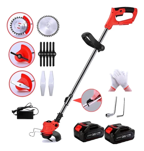Gracias a su batería de litio de 24V y su motor de 800W, esta herramienta es ideal tanto para uso doméstico como profesional. Su altura de corte es totalmente ajustable (desde 1 hasta 4 pulgadas), adaptándose a tus necesidades específicas.